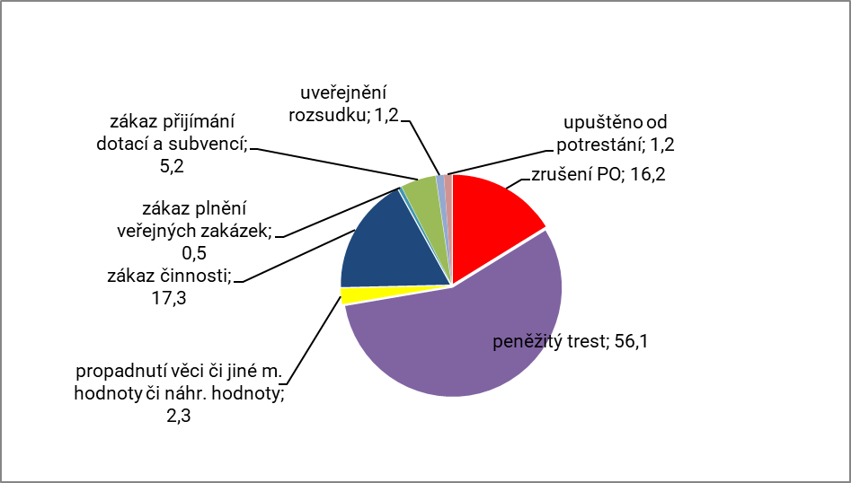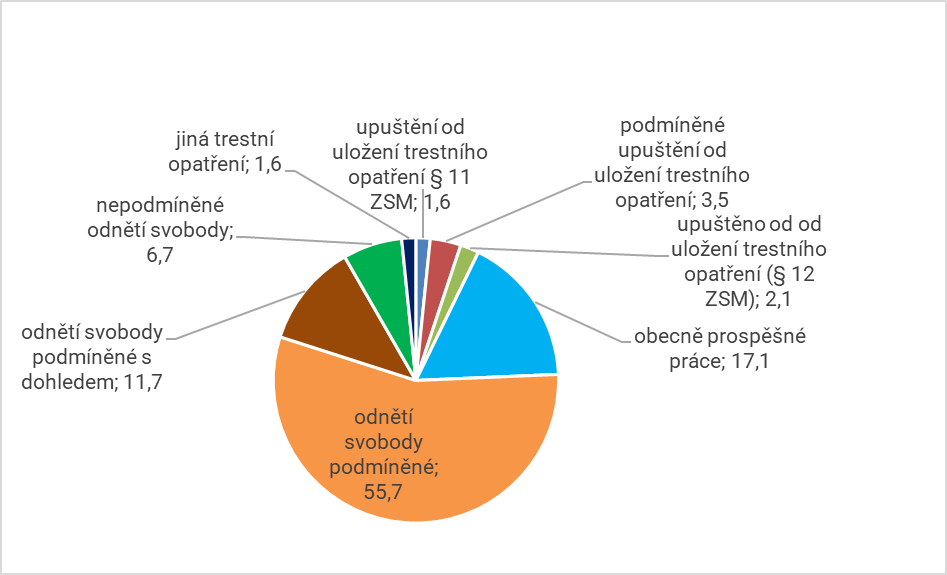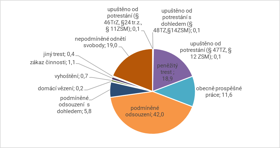 Pozn.: Jiná trestní opatření zahrnují trestní opatření zákazu činnosti, propadnutí věci, vyhoštění, domácího vězení, zákazu vstupu na sportovní,